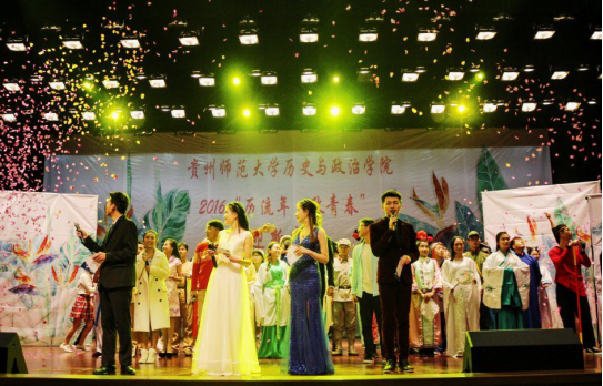 本次晚会共有十六个节目,契合“历流年·政青春”的晚会主题分为三个篇章:“从前慢”、“在这个世界相遇”、“后青春期的诗”。值得一提的是,本次晚会的节目进行了大胆的创新,《悟空》这一节目将书法点缀其中,形成了舞蹈与书法交相辉映的效果,以笔墨为配,以舞蹈为伴。舞台剧《胜利的信念》以从红军长征至抗战胜利为背景主线,传递了“不忘历史,奋勇向前”的精神,表达了同学们的拳拳爱国心,同时也彰显了bb贝博艾弗森官方网站的学院特色,起到了很好的效果。学院师生自编自演的节目《花溪好风光》更是富有新意,将朗诵与歌唱合为一体,再配上花溪校区的美景靓图更是引人入胜,突出了历政师生们的多才多艺。李红军老师携研究生倾情表演的小品《甄嬛后传》赚足了观众的笑声,将晚会再一次推向高潮。