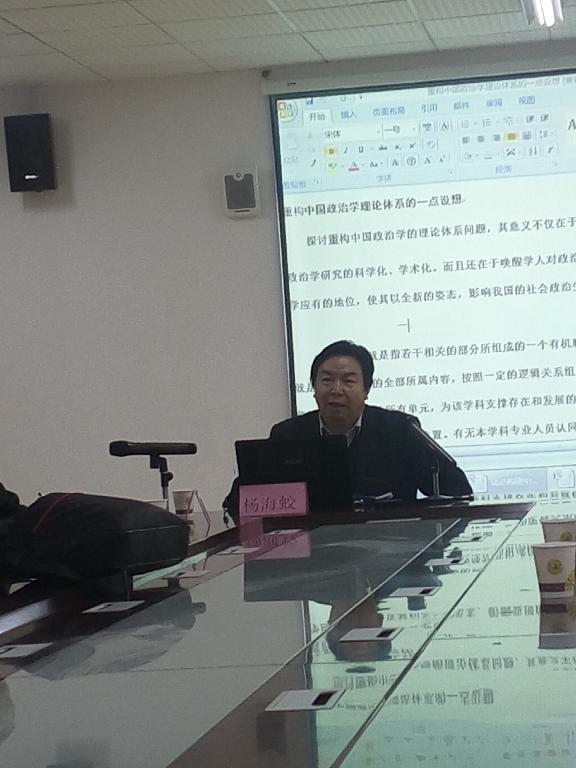 4月22日,中国社会科学院政治学研究所原副所长、博士生导师杨海蛟研究员莅临bb贝博艾弗森官方网站,与师生进行了学术交流,并对贝博学科建设工作进行了指导。