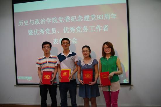 为了纪念中国共产党建党93周年,bb贝博艾弗森官方网站党委于6月24日晚上在文科楼三楼学院大会议室召开了纪念建党93周年主题教育活动暨优秀党员、优秀党务工作者表彰大会。学院党委书记杨芳、副书记廖光珍、党委秘书郭德斌老师出席,学院下辖研究生、本科生、社团等共计17个党支部书记及学生党员代表参加,会议由学院党委副书记廖光珍主持。