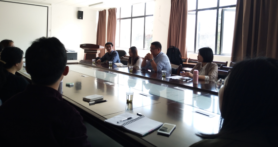 座谈会后,彭理事一行三人还在GJ6201教室举办了宣讲会,向社工系14-17级百余名学生和部分社工系老师介绍了深圳社会工作的发展现状,政府对社工的政策支持,以及龙翔社工的实务经验。彭理事表示欢迎有兴趣的同学到龙祥实习和工作,并鼓励大家多走出去看一看,亲身了解社工的最新发展情况。三人还就学生关心的专业伦理、就业前景、薪酬待遇等话题与学生进行了深入坦诚的交流,现场气氛热烈。参加宣讲会的老师和学生均表示受益匪浅,深受鼓舞。