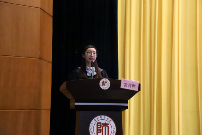 本科毕业生代表岳义荣、夏雨与研究生代表龙玲在典礼上的发言表达了对老师与学院的不舍与感恩,并表示在今后的生活和工作中,会将在大学中培养的优良品格继续发扬,为学校与学院增光添彩。