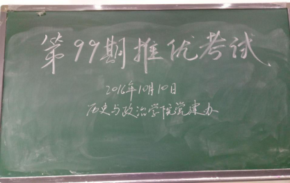 2016年10月10日下午四点。历政学院第99期推优考试在学院楼四楼4411 、4413 、4415三间教室进行。此次推优考试有61名本科生,34名研究生参加,共计95人。参加推优考试的人员本科由14、15级辅导员、班长、双学组长和团干推荐,研究生由辅导员、支部书记推荐。本次推优考试由党委秘书崔文文老师主持。