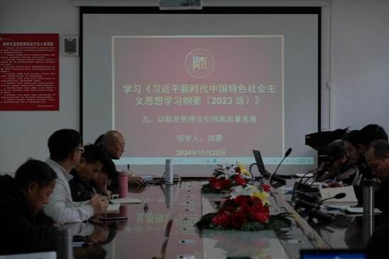 饶蕾同志领学了《习近平新时代中国特色社会主义思想学习纲要(2023版)》的第九部分“以新发展理念引领高质量发展”。主要讲解了新发展理念在引领高质量发展过程中所发挥的重要作用,有力地推动了产业升级,有助于解决发展不平衡等诸多问题,进而促进经济实现可持续健康发展。接着,领学了《中国共产党统一战线工作条例》,她强调全体教职工应积极主动地学习领会该条例内容,立足自身岗位团结广大师生,积极参与民主协商,营造和谐氛围,为充分发挥统战工作效能贡献自身力量,共同服务于教育事业发展。