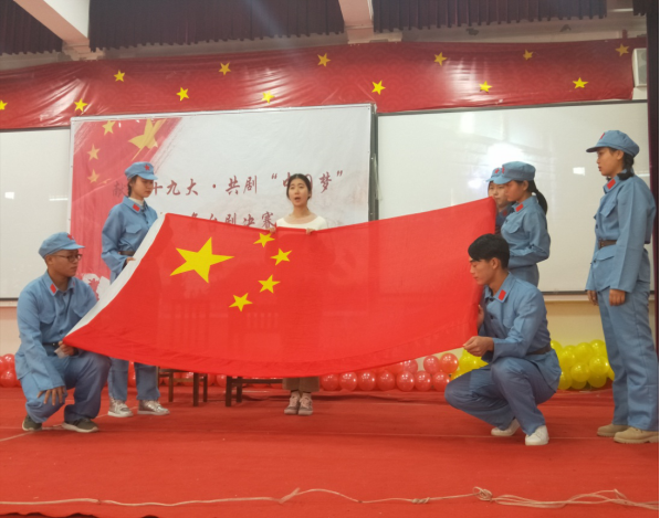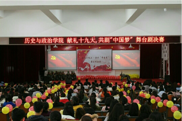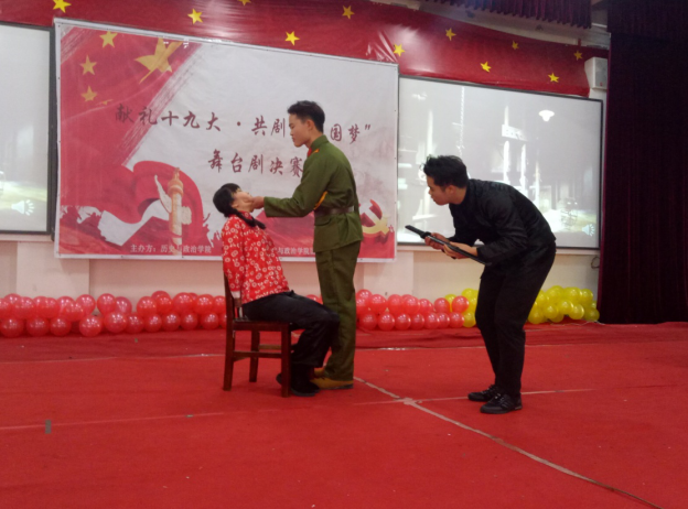 比赛正式开始前,主持人详细说明了赛制规则及评分标准,并由记分人员代表上台宣誓。大赛在激昂的国歌声中拉开序幕。比赛中,各参赛队伍的表演情感真实、引人入胜,他们将剧目与十九大精神紧密结合,把心中的那段红色历史表现的淋漓尽致,举手投足间都饱含着了对党和祖国深深的热爱。现场工作人员分工明确,场内秩序井然。