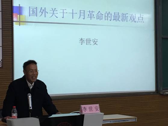 李世安教授首先对当前学术界关于十月革命的各种观点进行了全面深刻的剖析,对“十月革命一声炮响,没有给中国带来马列主义”、“列宁是德国间谍”、“十月革命是一场政变”等否定十月革命历史作用的错误观点进行了有理有据的反驳。他认为十月革命建立了一种全新的、与资本主义完全不同的社会主义制度,是一场真正意义上的无产阶级社会主义革命。