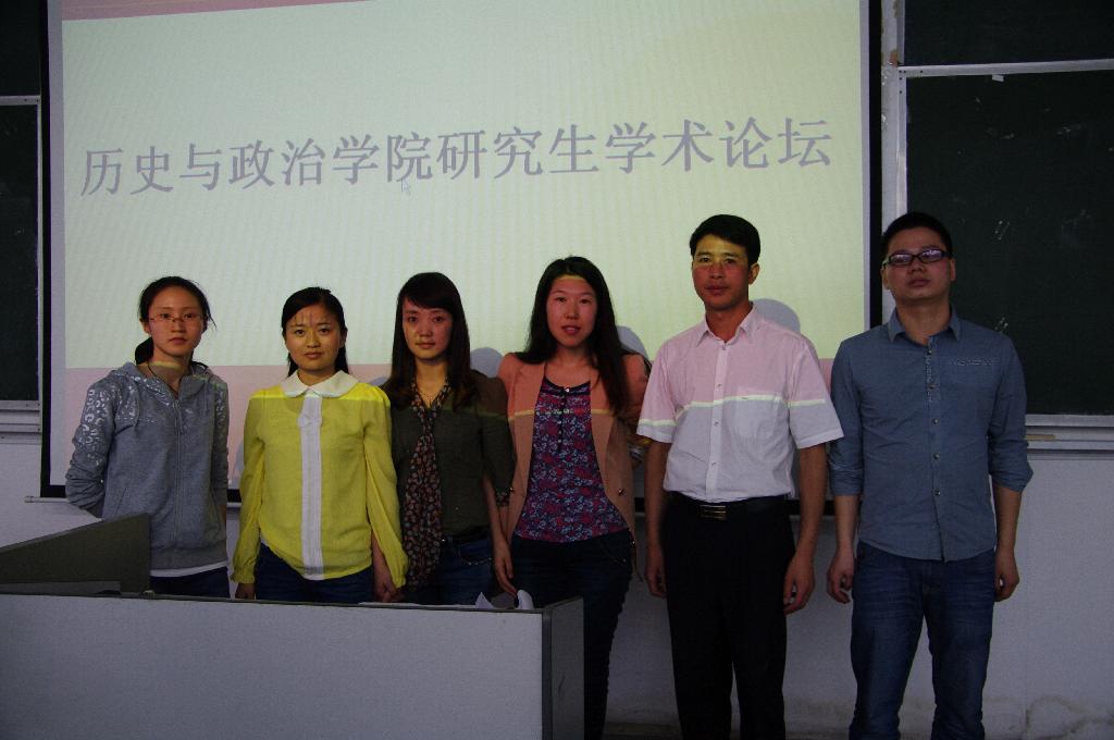 本年度论坛经过学生自愿申报、查重检测、专家对论文学术水平进行初评后,选出八篇论文作者进行主题演讲。除一名同学因故弃权外,其他七名同学的演讲题目是:2013级中国史专业向丽同学的“论清代以降清水江流域苗族婚俗的演变原因”,2012级马克思主义发展史专业杜金凤同学的“马克思的能力本位与当代贵州新型工业化”,2012级政治学专业李波同学的“魁北克民族分离运动对加拿大政治整合的影响与启示”,2012级思想政治教育专业周骞同学的“‘中国梦’视域下当代大学生生态道德教育的思考”,2012级中国史专业李鹏飞同学的“清水江下游地区油林的开发与保护”,2013级中国史专业胡瑾同学的“论黔东北土家族宗教生态伦理思想,2013级世界史专业吴永航同学的“试析小乘佛教与缅甸的独立斗争及其衰落”。