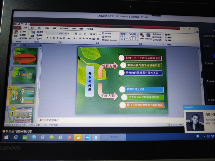 在答辩过程中,学生使用“屏幕共享”对自己的毕业论文成果进行展示和汇报;评委们在仔细观看和听取之后,根据成果材料和汇报情况,与学生“连麦”进行问答,并提出意见和建议;小组答秘书对答辩过程进行记录。