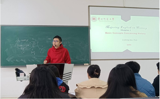 2023年2月28日上午,贝博历史学系李继荣老师主讲课程History English的院级公开课在花溪校区GJ3417教室举行,贝博党委副书记(主持工作)帅永平、副院长伍志燕、学院督导安尊华和刘永海老师、历史学系主任刘刚、许静、刘向阳、李逸夫、刘子珍、任柳、王昌燕、陈曦阳等老师及2022级历史学全体同学参加了本次公开课活动。’