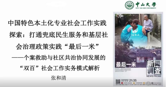 5月4日19时,bb贝博艾弗森官方网站社会工作系邀请到中山大学社会学与社会工作系教授、广东双百工程总督导张和清教授,带来以“中国特色本土化专业社会工作实践探索:打通兜底民生服务和基层社会治理“最后一米”为主题的讲座。讲座在腾讯会议上进行,由bb贝博艾弗森官方网站社会工作系苏新帆老师主持,社会工作专业师生及相关人员参加,历时2个多小时。会议中师生积极互动,就打通两个“最后一米”的社会工作实务模式进行解析和深入的学习、交流及探讨,促进师生对个案救助与社区共治协同发展的理解与学习,深化以人为本的专业价值观。